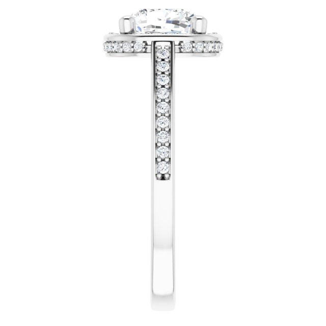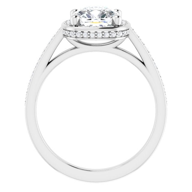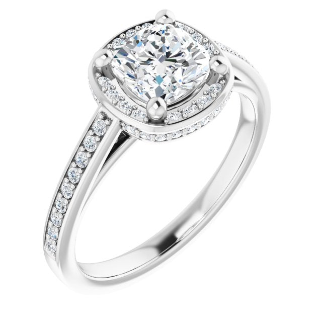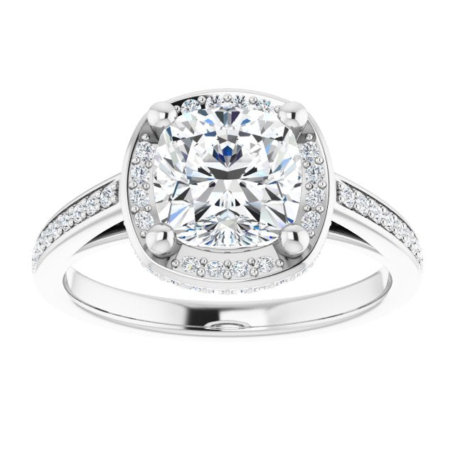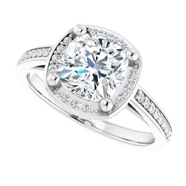 10K White Gold Customizable Cathedral-Halo Cushion Cut Design with Under-halo & Shared Prong Band
