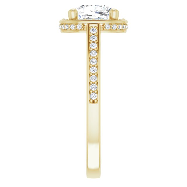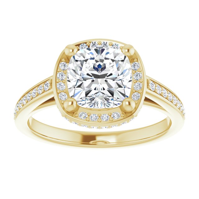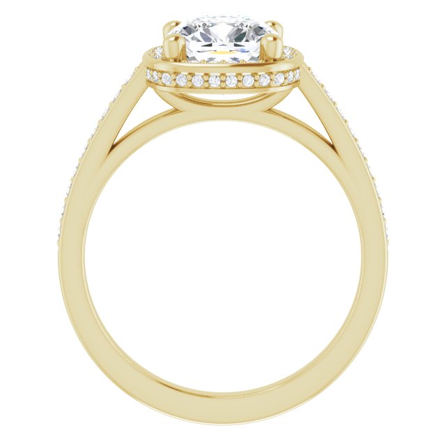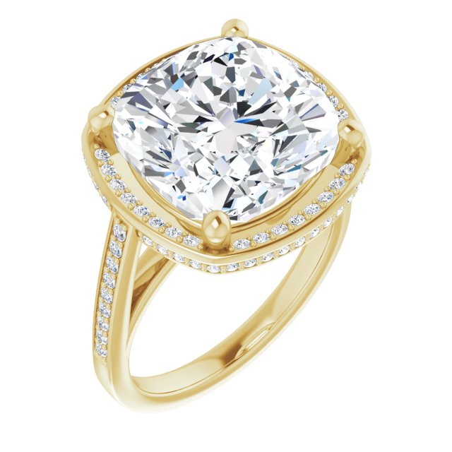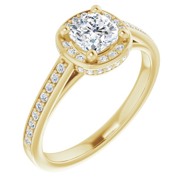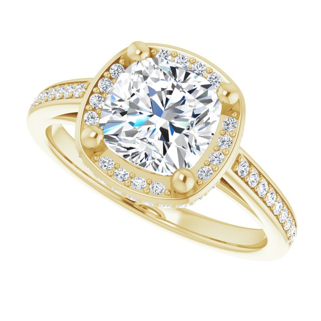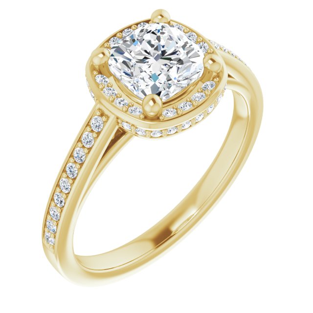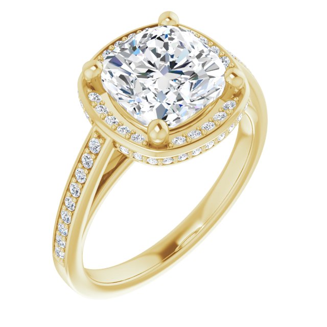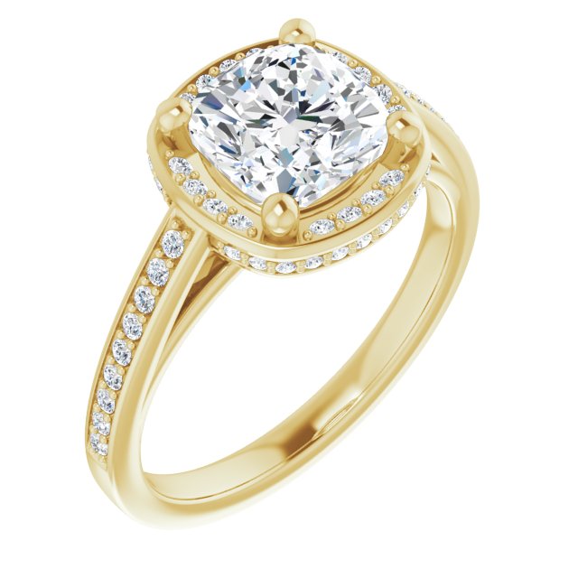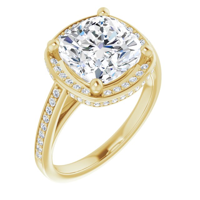 10K Yellow Gold Customizable Cathedral-Halo Cushion Cut Design with Under-halo & Shared Prong Band