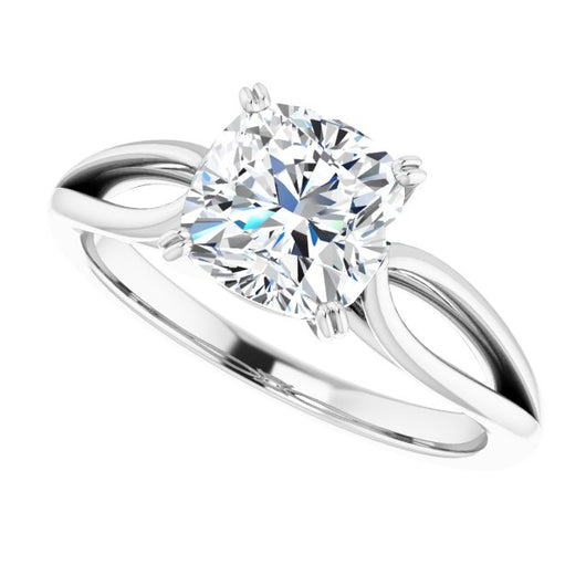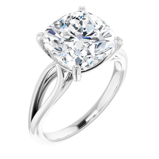10K White Gold Customizable Cushion Cut Solitaire with Wide-Split Band