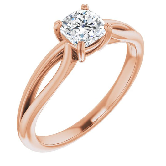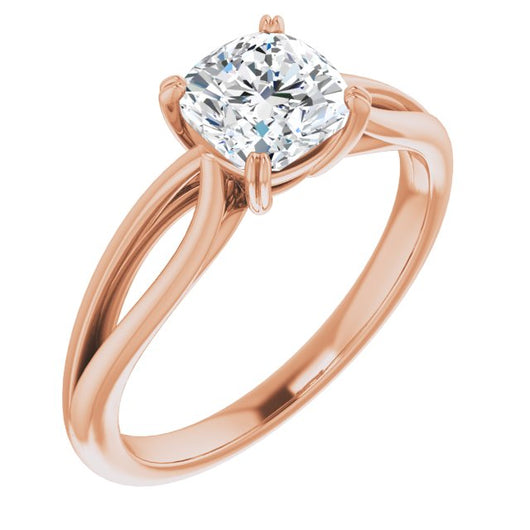 10K Rose Gold Customizable Cushion Cut Solitaire with Wide-Split Band