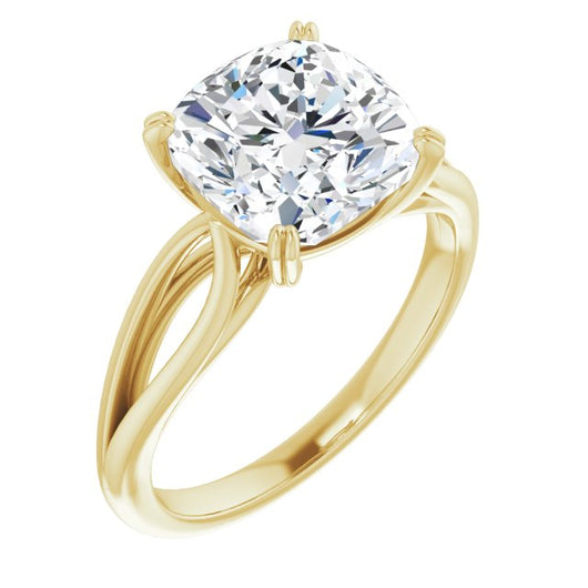 10K Yellow Gold Customizable Cushion Cut Solitaire with Wide-Split Band