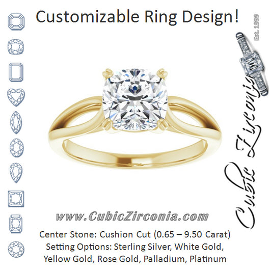 Cubic Zirconia Engagement Ring- The Gayle (Customizable Cushion Cut Solitaire with Wide-Split Band)