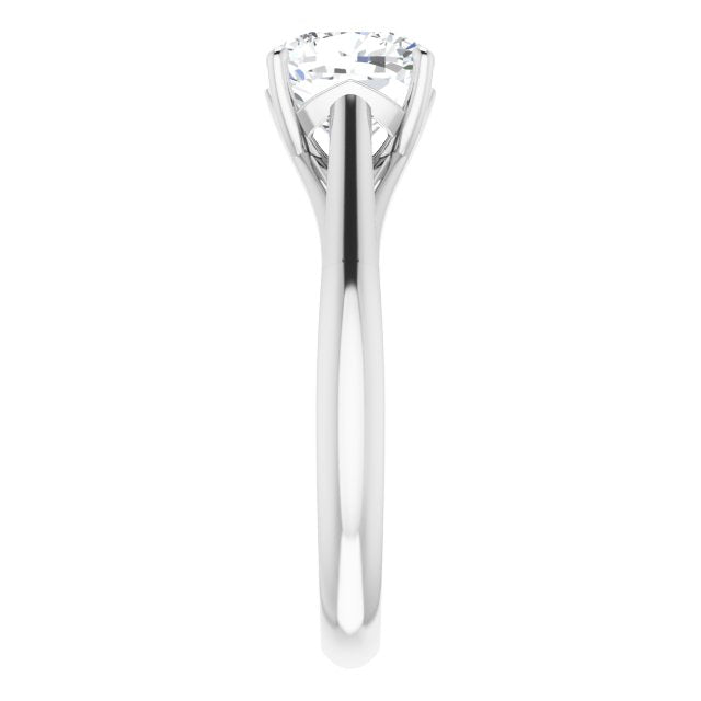 The Holly engagement ring is an understated, timeless solitaire that comes standard featuring a center stone CZ with your choice of five (5) center stone shapes -- as pictured here in Cushion Cut in carat weight sizes from 0.65 to 3.50 carats. This sculptural-inspired non-traditional-pronged solitaire shimmers like no other, brilliant and believable with diamond-quality AAAAA (5A) rated Cubic Zirconia instead of an overpriced diamond that would cost you an arm and a leg. Do you see the crosshatched trellis beneath the center setting, just different enough to catch the eye that thought it knew what to expect? Never be predictable!