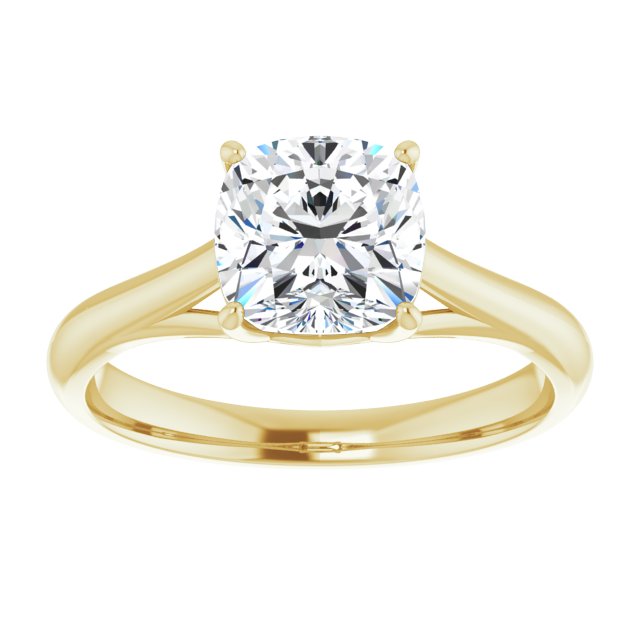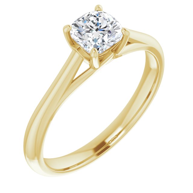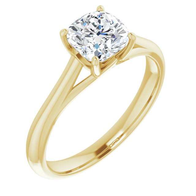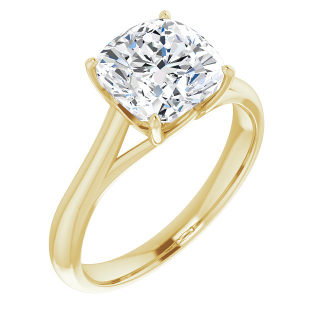 10K Yellow Gold Customizable Cushion Cut Solitaire with Crosshatched Prong Basket