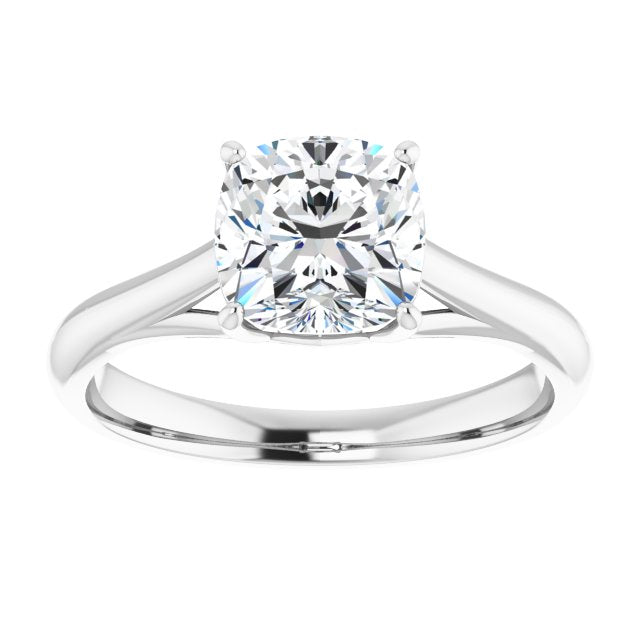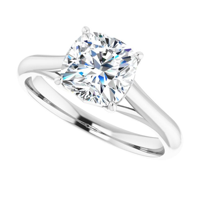 10K White Gold Customizable Cushion Cut Solitaire with Crosshatched Prong Basket