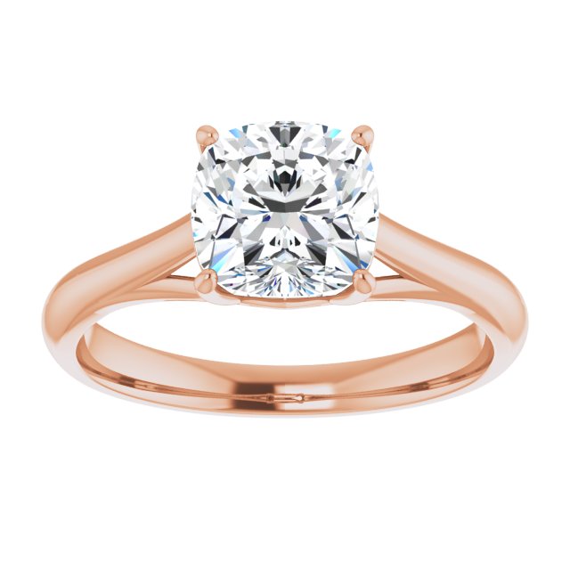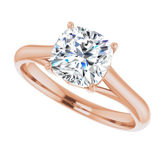 10K Rose Gold Customizable Cushion Cut Solitaire with Crosshatched Prong Basket