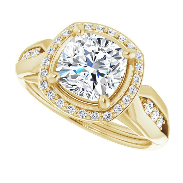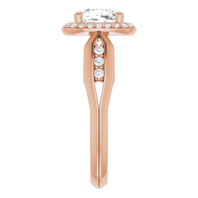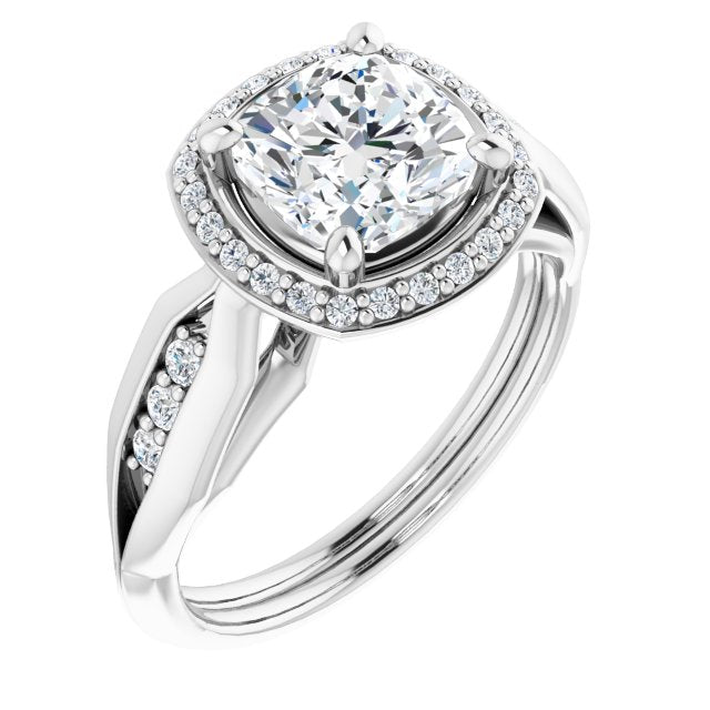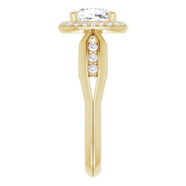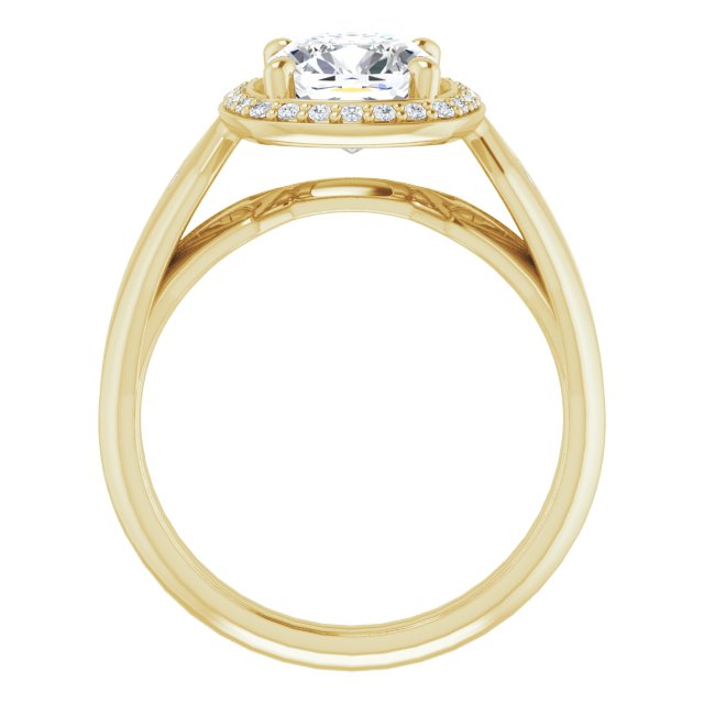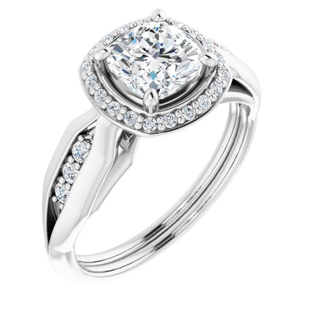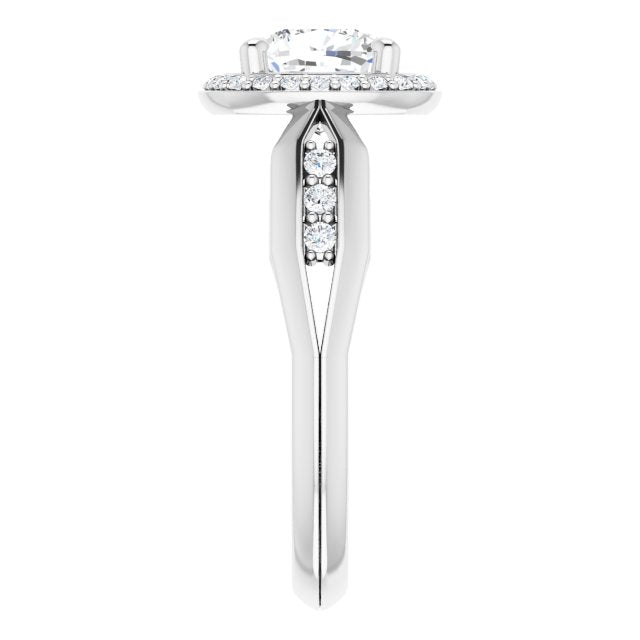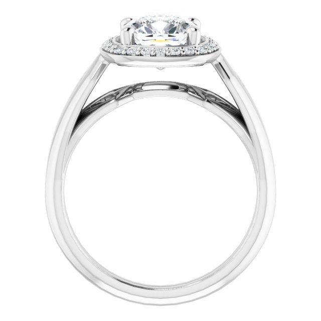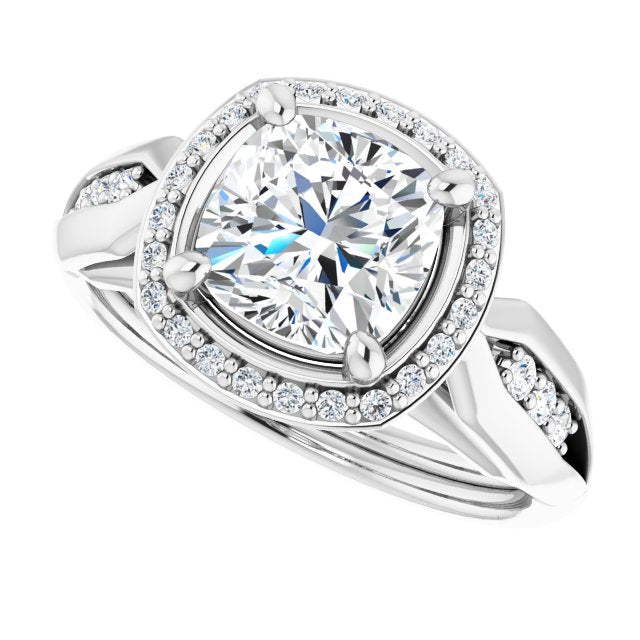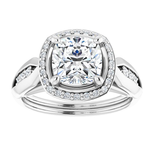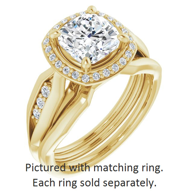 Center Stone Shape: Cushion Cut (as pictured). See this customizable ring set with other available center stone shapes here: customize setting.