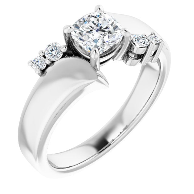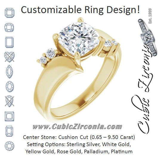 Center Stone Shape: Cushion Cut (as pictured). See this customizable ring set with other available center stone shapes here: customize setting.