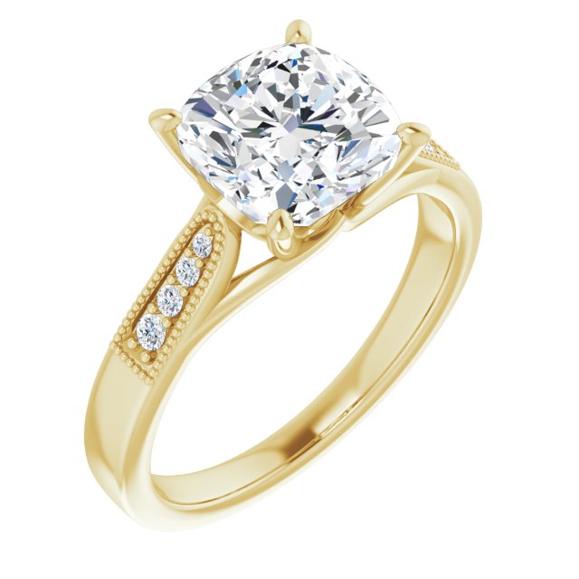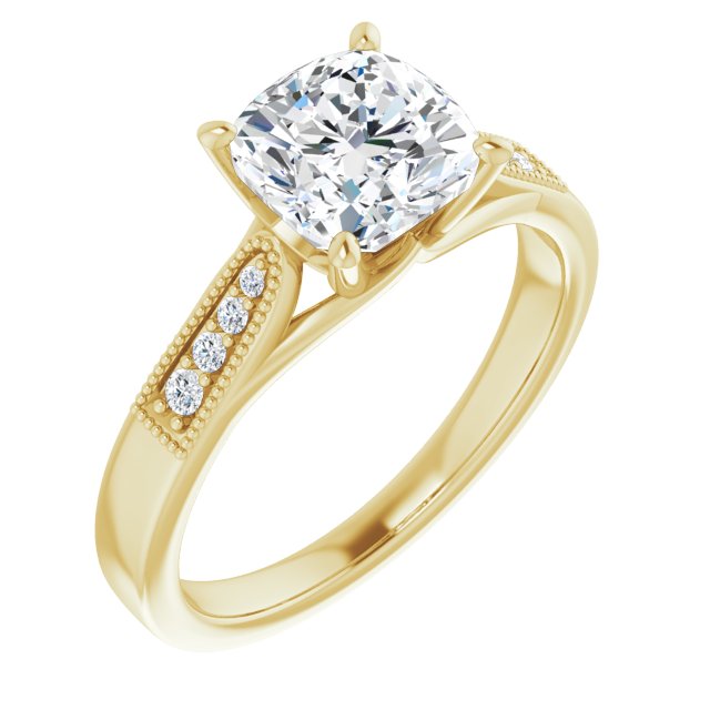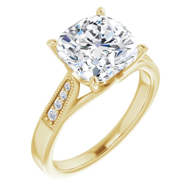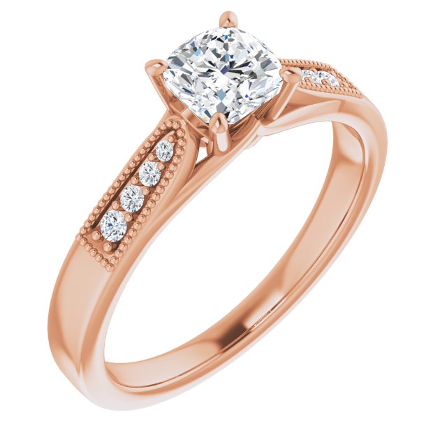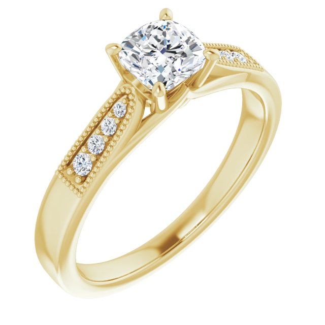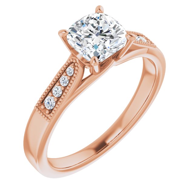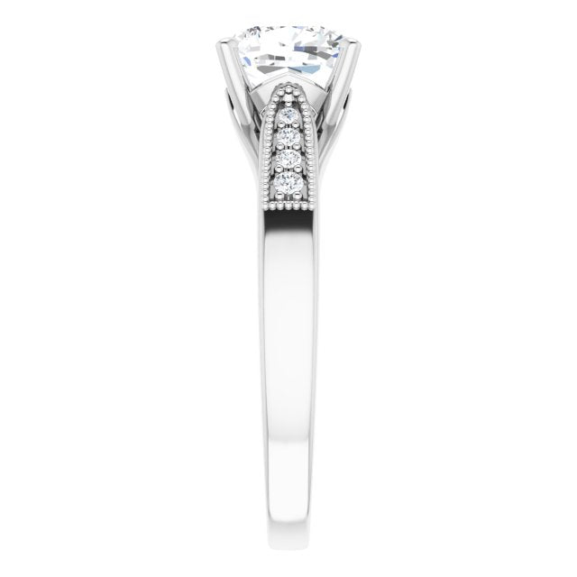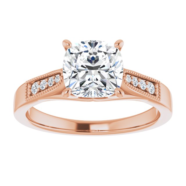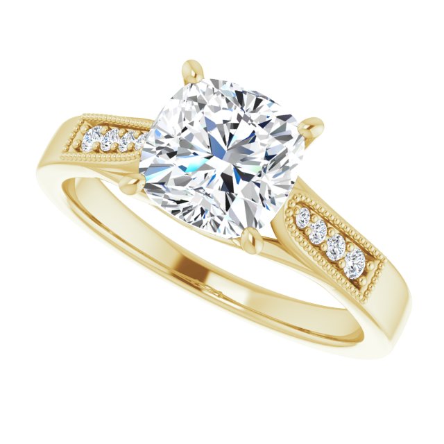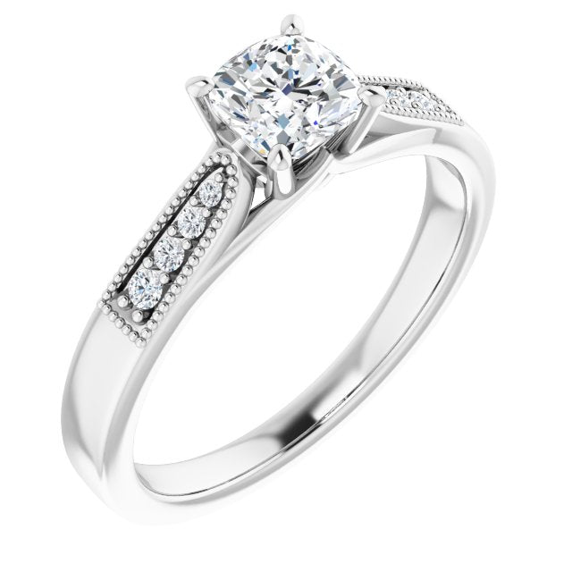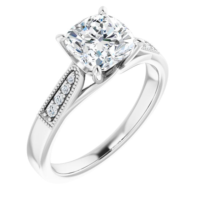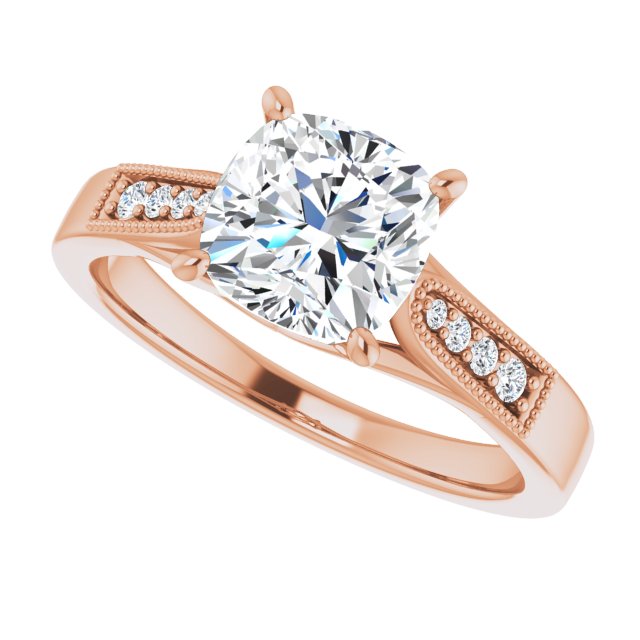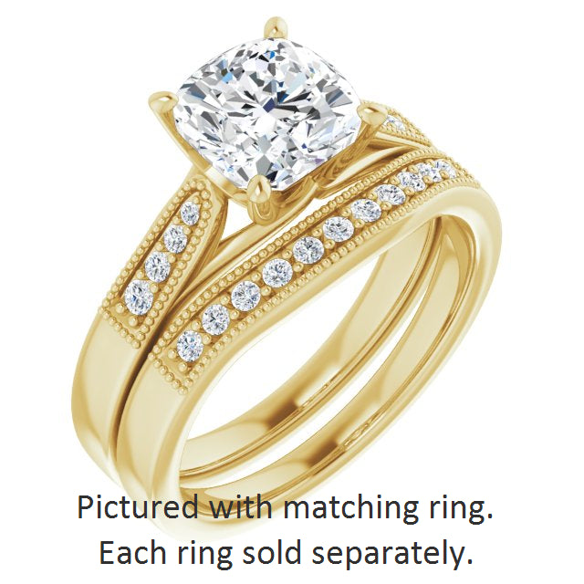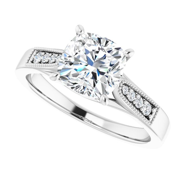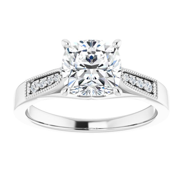 Center Stone Shape: Cushion Cut (as pictured). See this customizable ring set with other available center stone shapes here: customize setting.