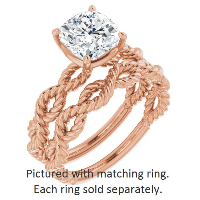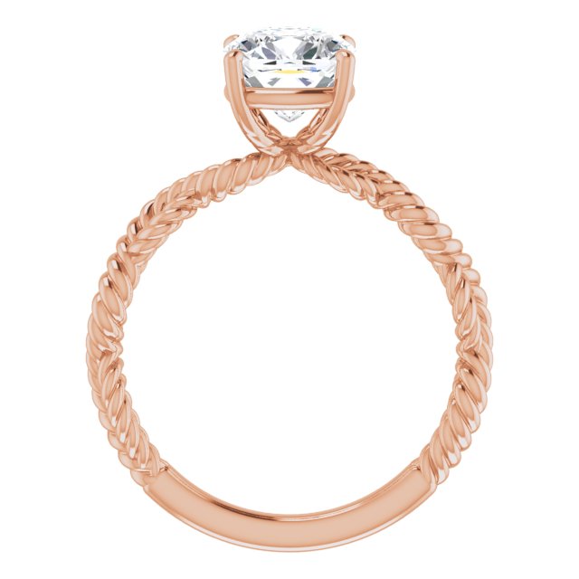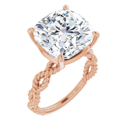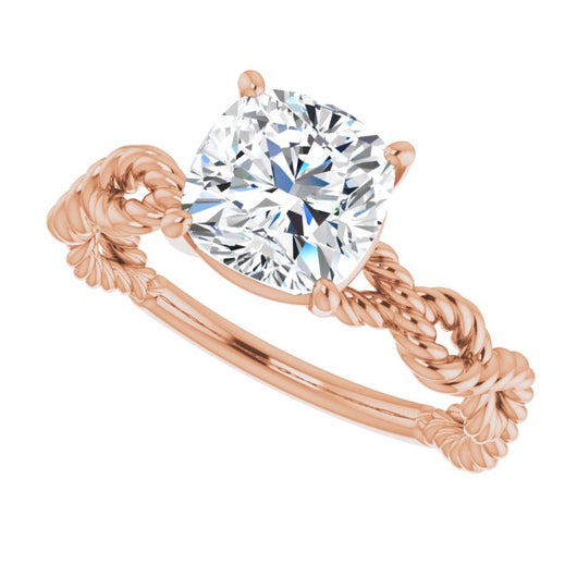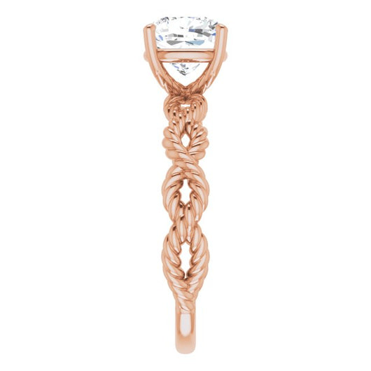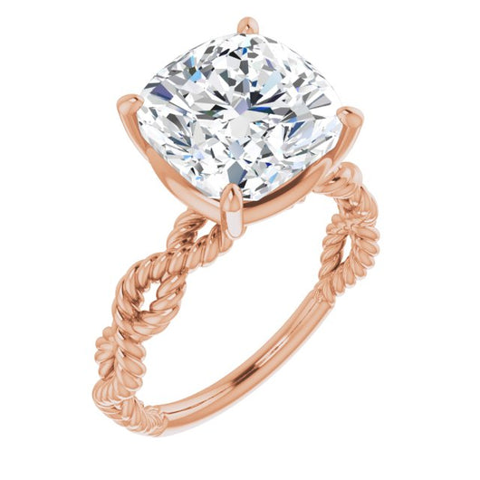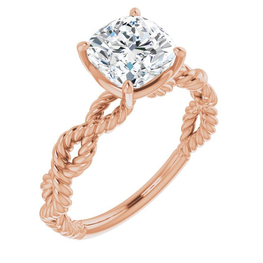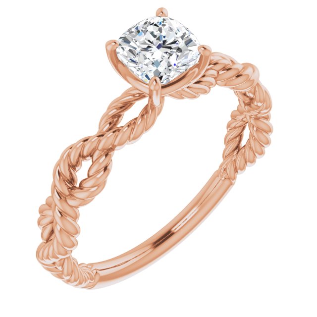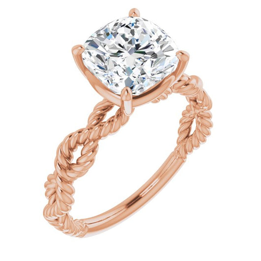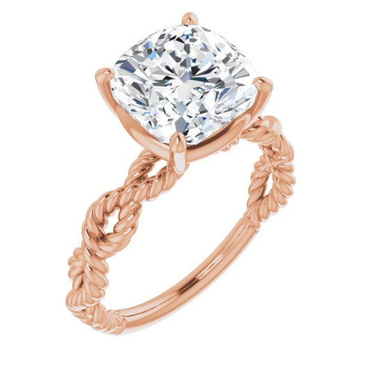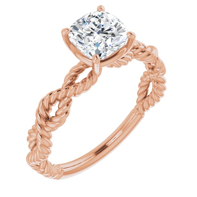 10K Rose Gold Customizable Cushion Cut Solitaire with Infinity-inspired Twisting-Rope Split Band