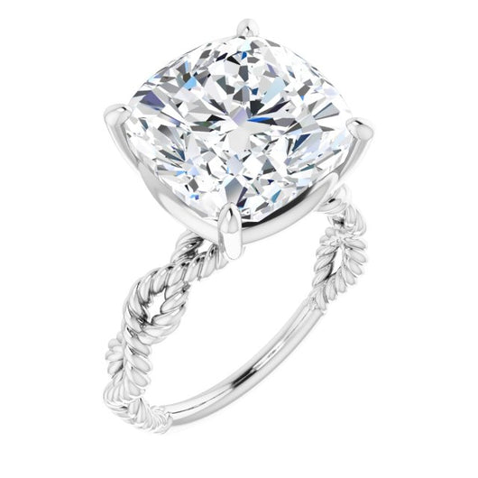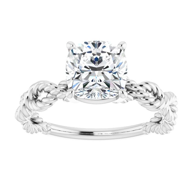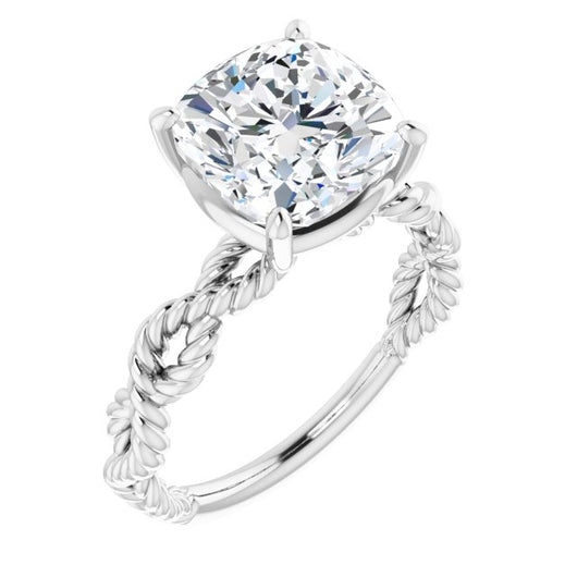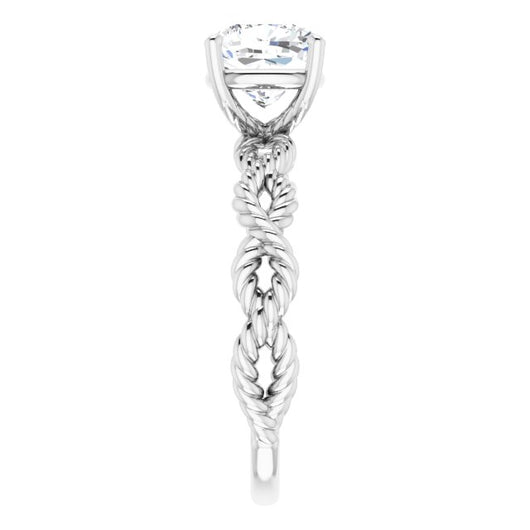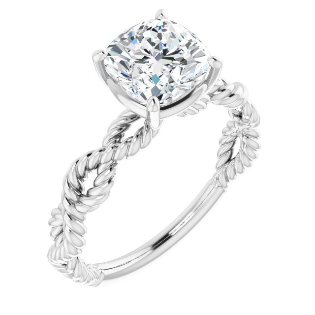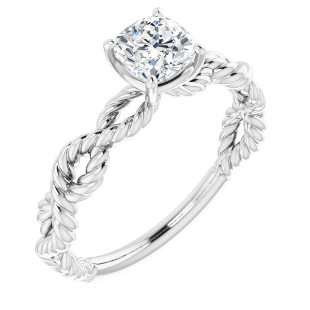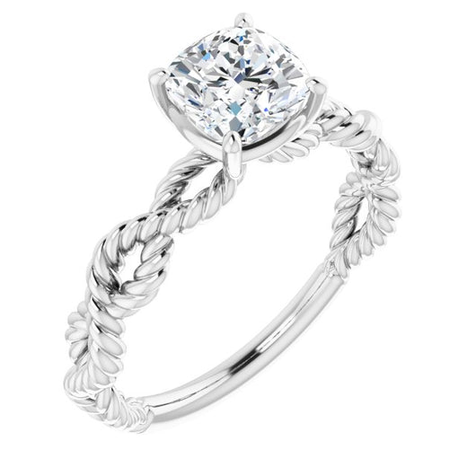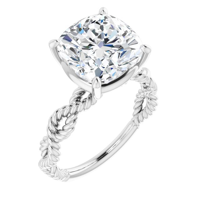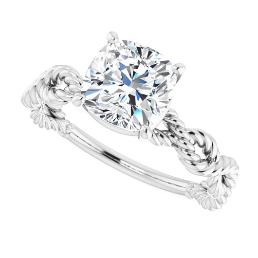 10K White Gold Customizable Cushion Cut Solitaire with Infinity-inspired Twisting-Rope Split Band