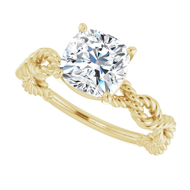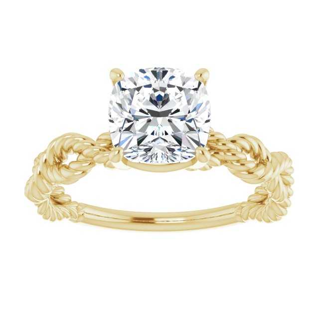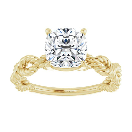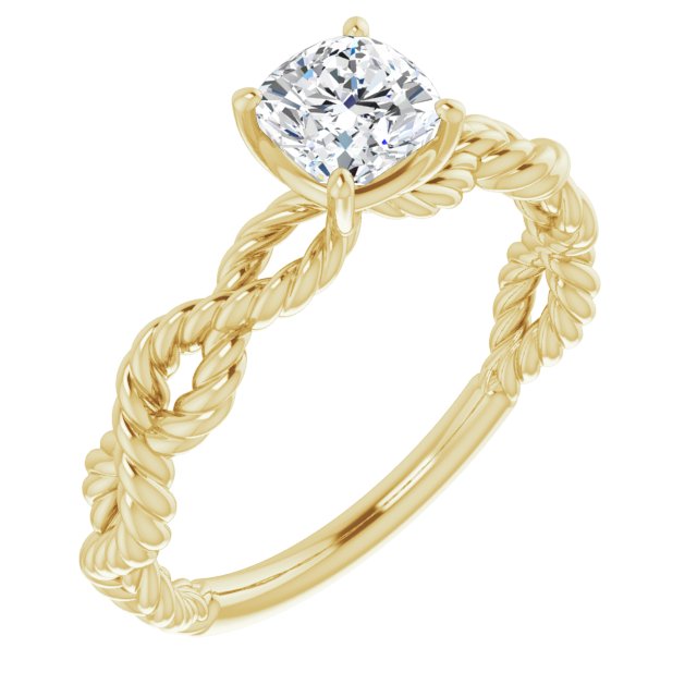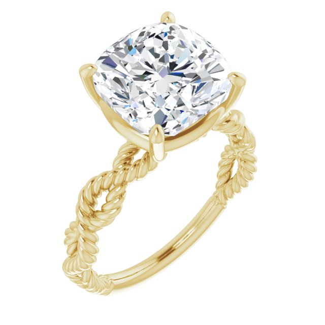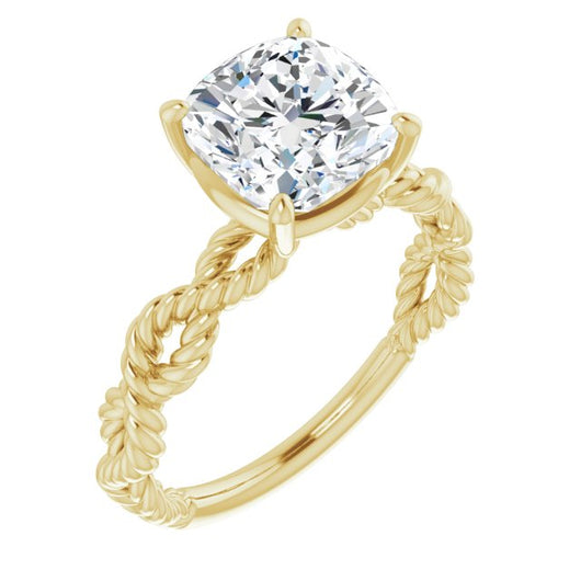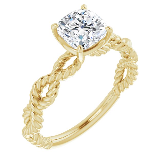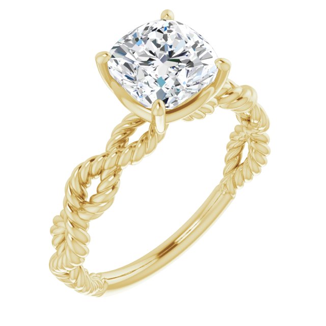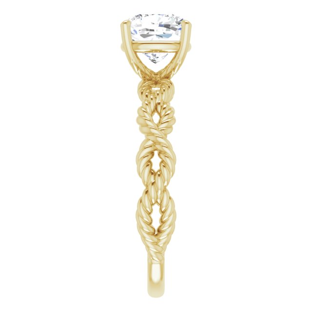 10K Yellow Gold Customizable Cushion Cut Solitaire with Infinity-inspired Twisting-Rope Split Band
