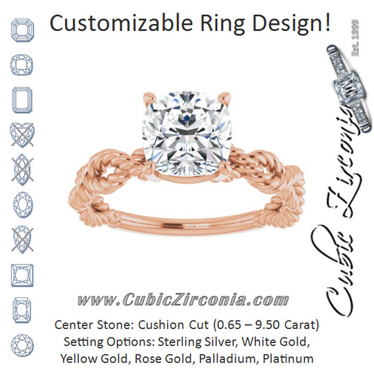 Cubic Zirconia Engagement Ring- The Jazzlyn (Customizable Cushion Cut Solitaire with Infinity-inspired Twisting-Rope Split Band)
