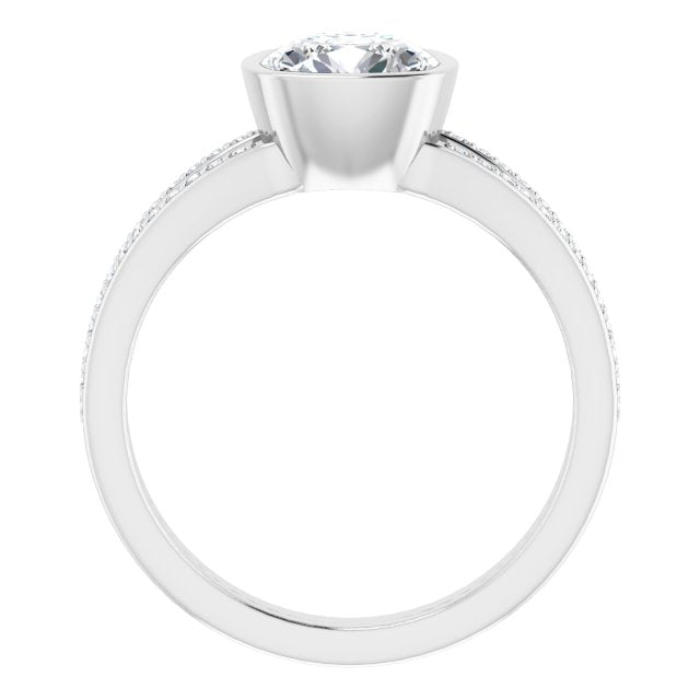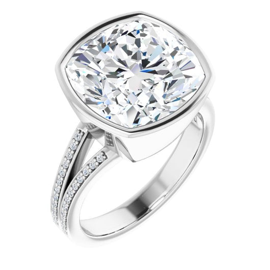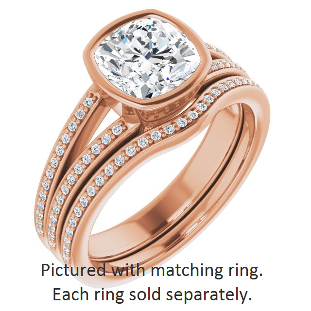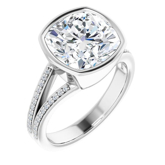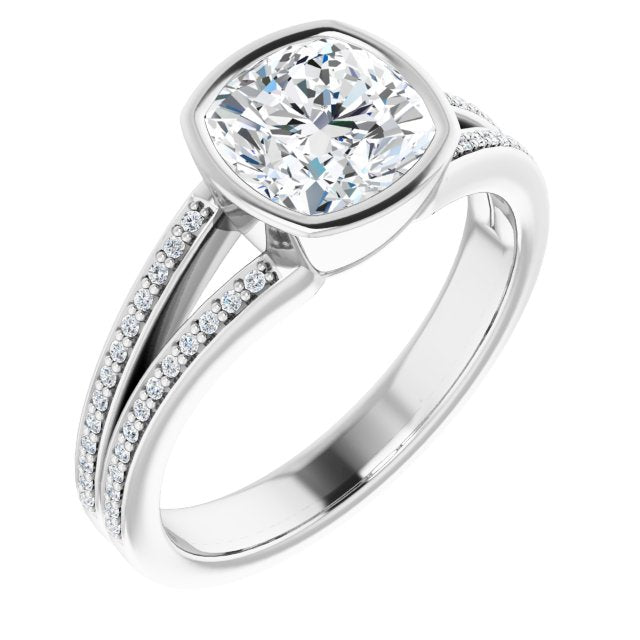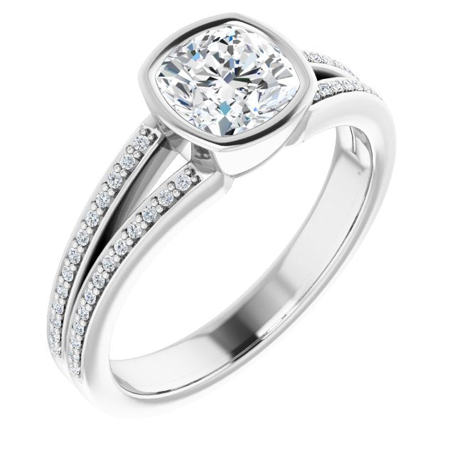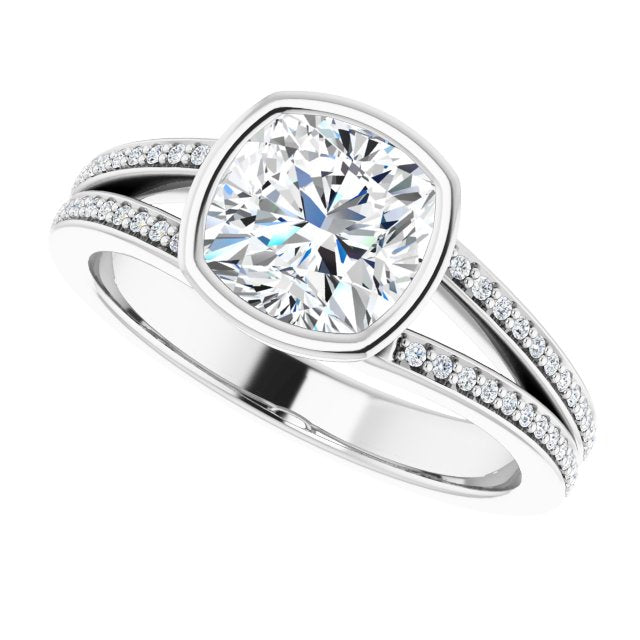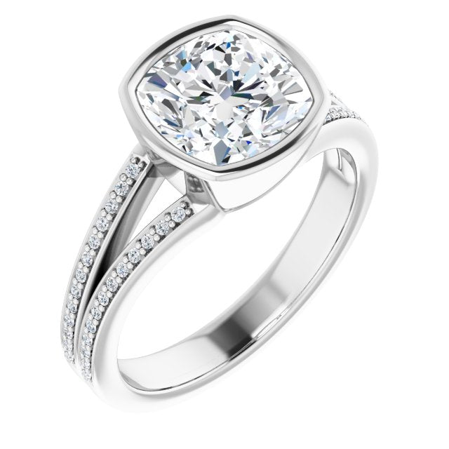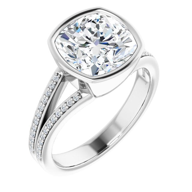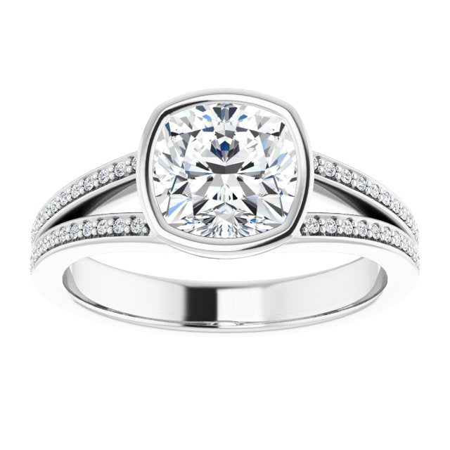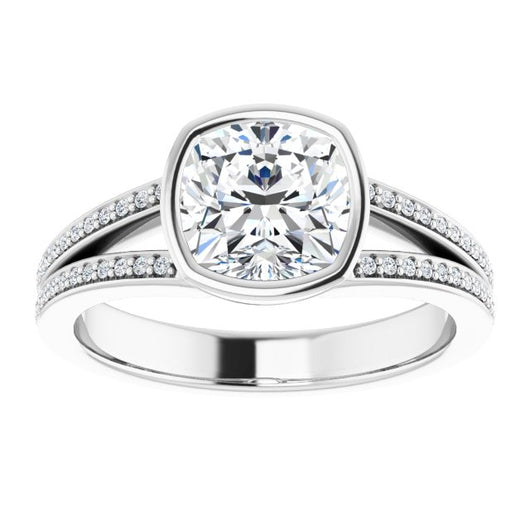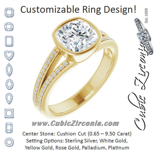 Cubic Zirconia Engagement Ring- The Jenni Lou (Customizable Bezel-set Cushion Cut Design with Split Shared Prong Band)