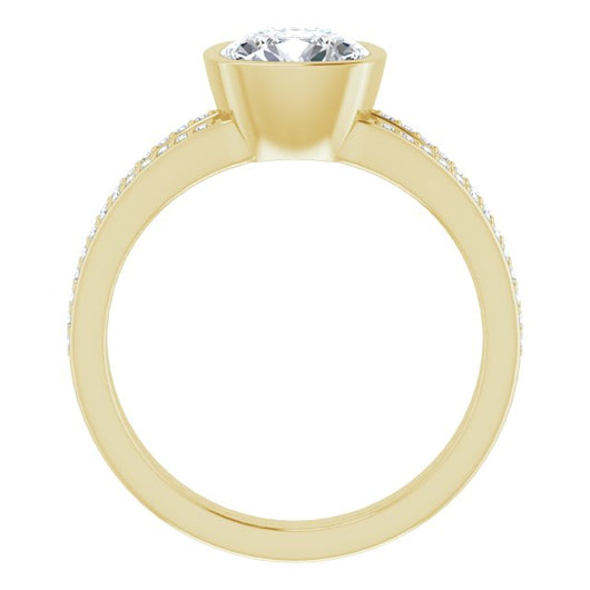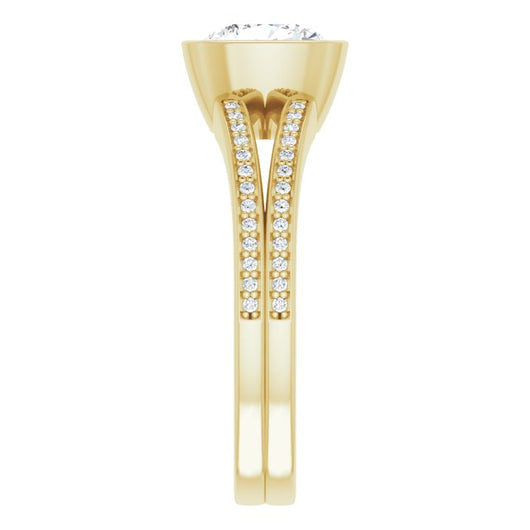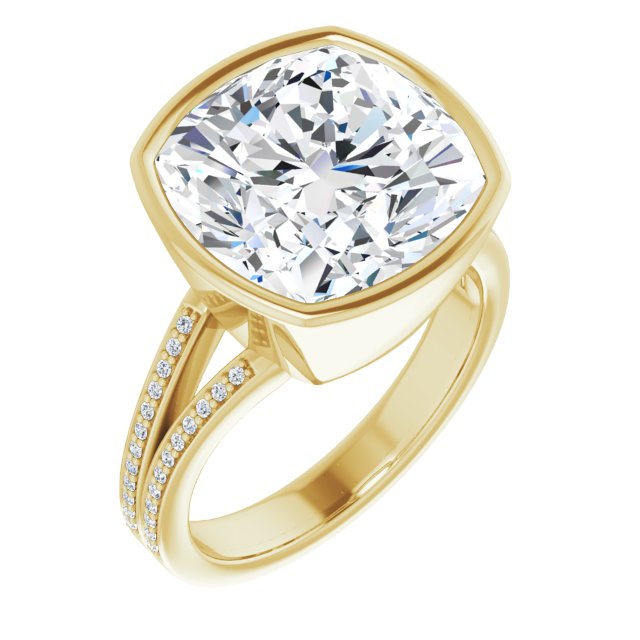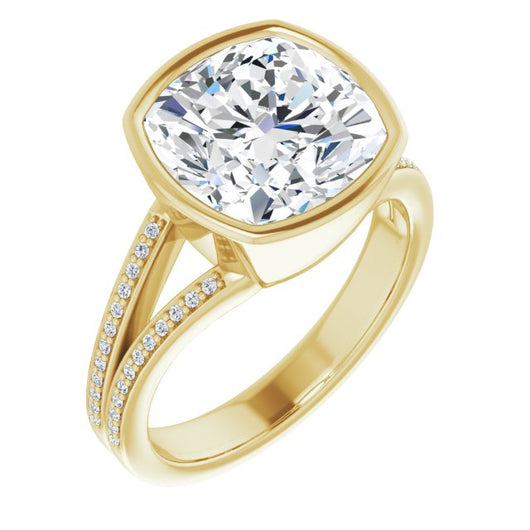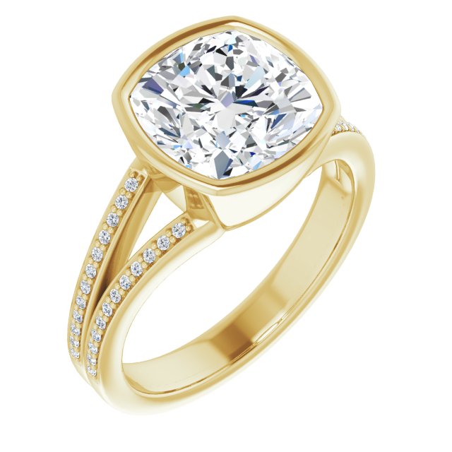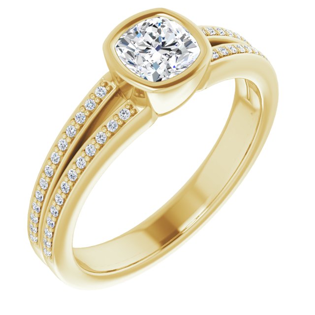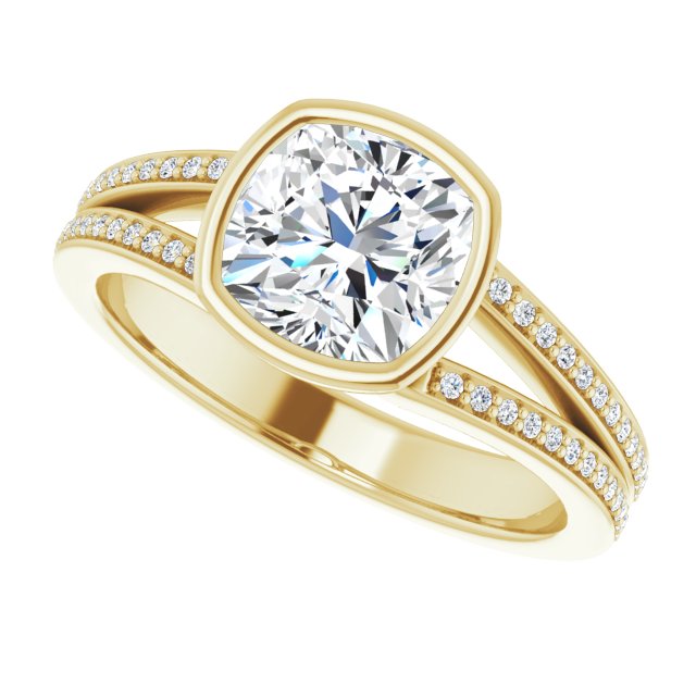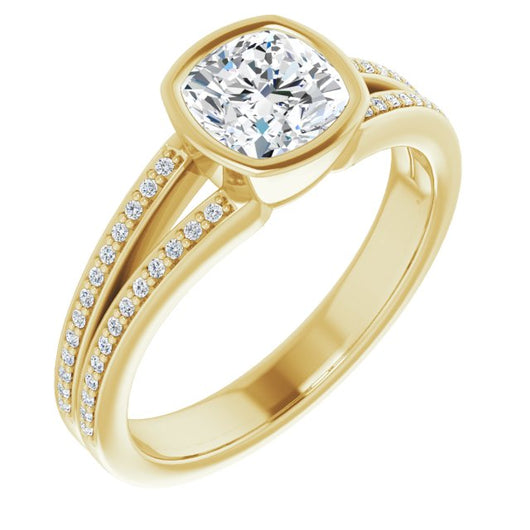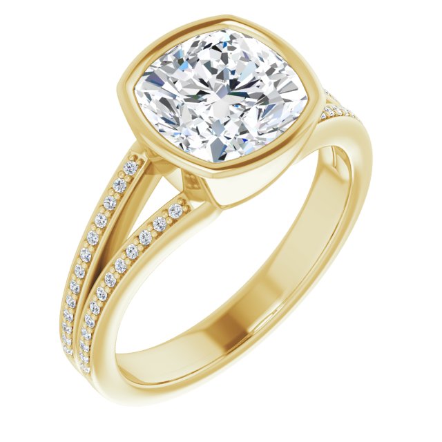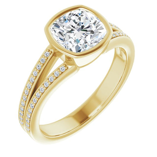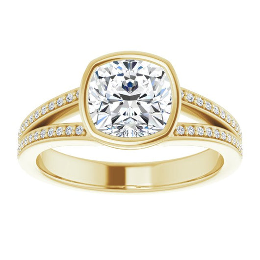 10K Yellow Gold Customizable Bezel-set Cushion Cut Design with Split Shared Prong Band