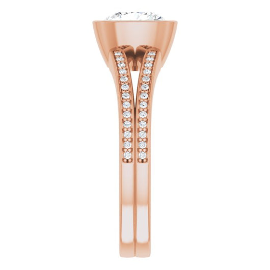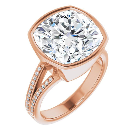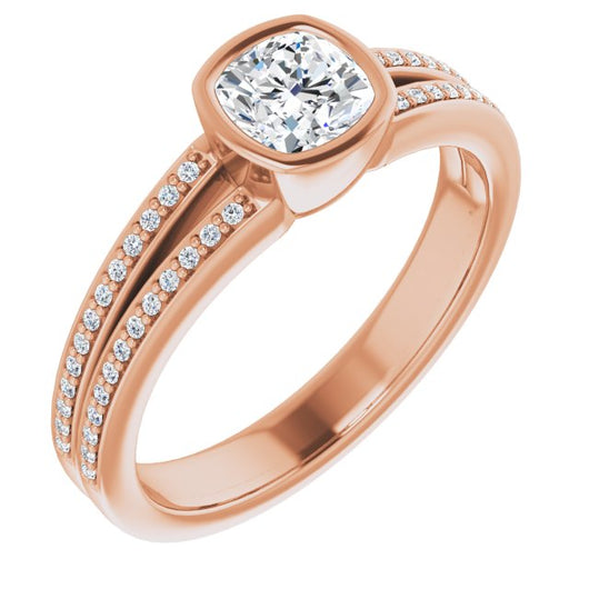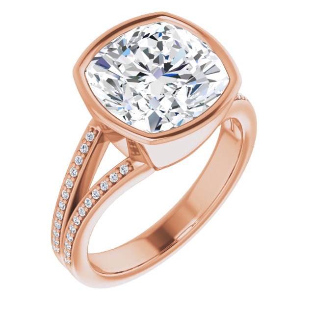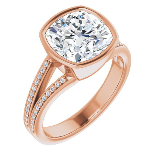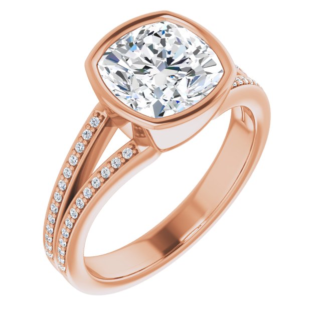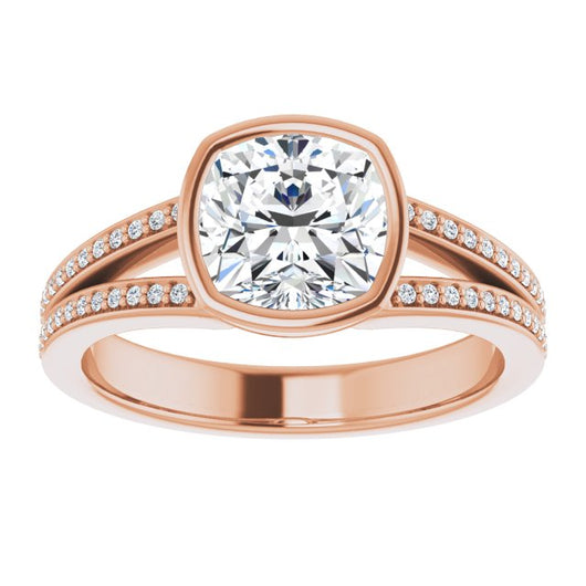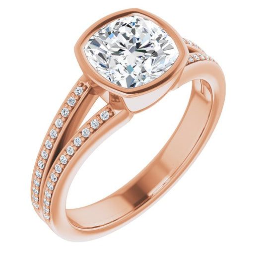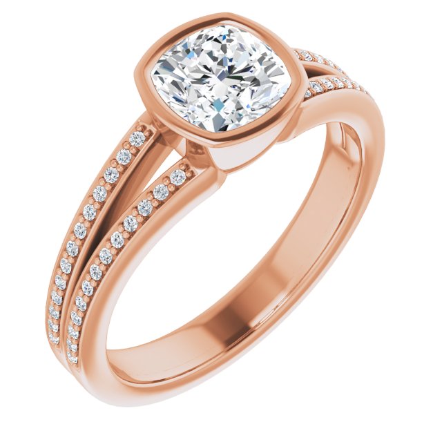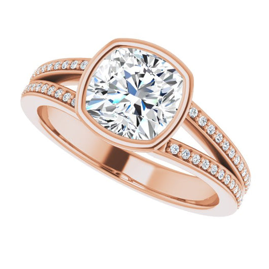 10K Rose Gold Customizable Bezel-set Cushion Cut Design with Split Shared Prong Band