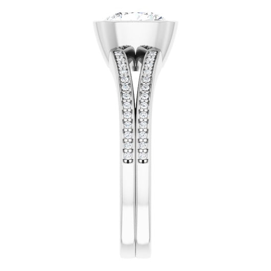 10K White Gold Customizable Bezel-set Cushion Cut Design with Split Shared Prong Band