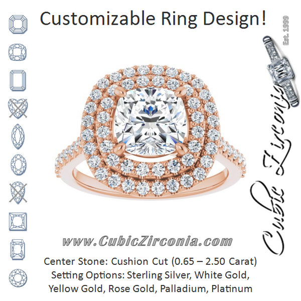 Cubic Zirconia Engagement Ring- The Giuliana (Customizable Cathedral-set Cushion Cut Design with Double Halo)