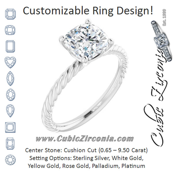 Cubic Zirconia Engagement Ring- The Donna Lea (Customizable Cushion Cut Solitaire featuring Braided Rope Band)