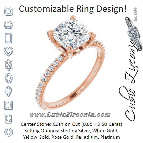 Cubic Zirconia Engagement Ring- The Jada (Customizable Cathedral-Bezel Cushion Cut Design with Under Halo and Shared Prong Band)