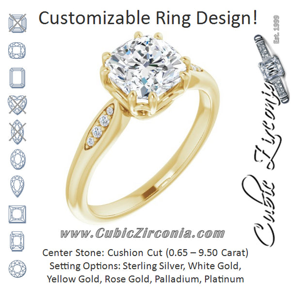 Cubic Zirconia Engagement Ring- The Sandhya (Customizable 9-stone Cushion Cut Design with 8-prong Decorative Basket & Round Cut Side Stones)