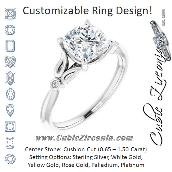 Cubic Zirconia Engagement Ring- The Dulcia (Customizable Cushion Cut Solitaire with Wheat-inspired Band)
