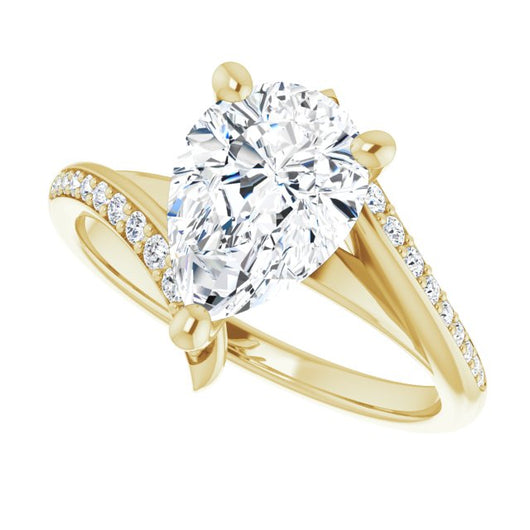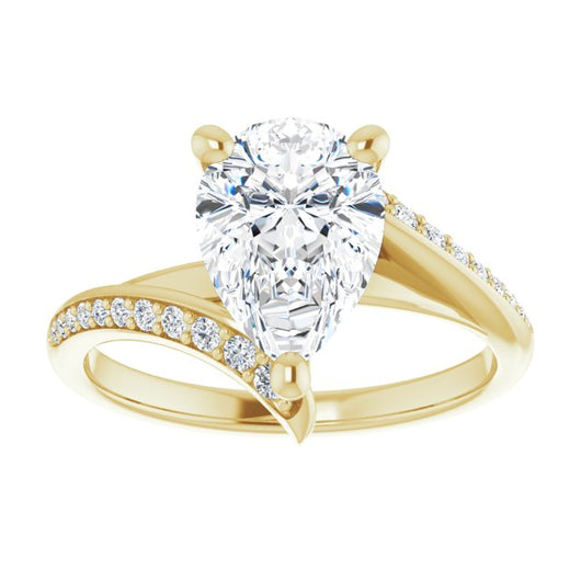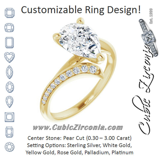 Center Stone Shape: Pear Cut (as pictured). See this customizable ring set with other available center stone shapes here: customize setting.