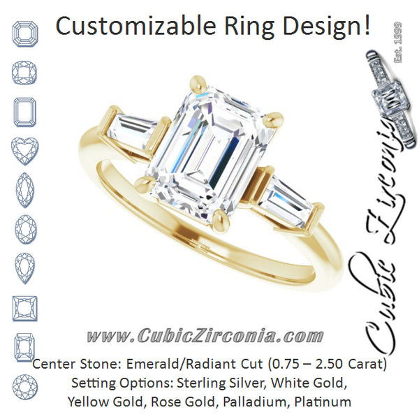 Cubic Zirconia Engagement Ring- The Dayanna Guadalupe (Customizable 3-stone Emerald Cut Design with Dual Baguette Accents))