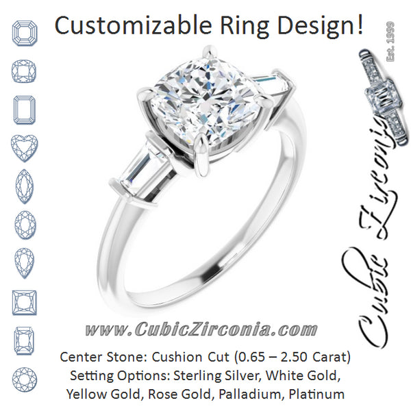 Cubic Zirconia Engagement Ring- The Dayanna Guadalupe (Customizable 3-stone Cushion Cut Design with Dual Baguette Accents))