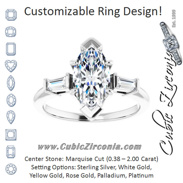 Cubic Zirconia Engagement Ring- The Dayanna Guadalupe (Customizable 3-stone Marquise Cut Design with Dual Baguette Accents))