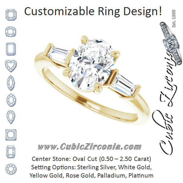 Cubic Zirconia Engagement Ring- The Dayanna Guadalupe (Customizable 3-stone Oval Cut Design with Dual Baguette Accents))