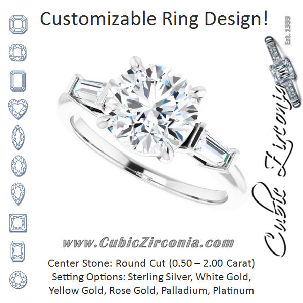 Cubic Zirconia Engagement Ring- The Dayanna Guadalupe (Customizable 3-stone Round Cut Design with Dual Baguette Accents))