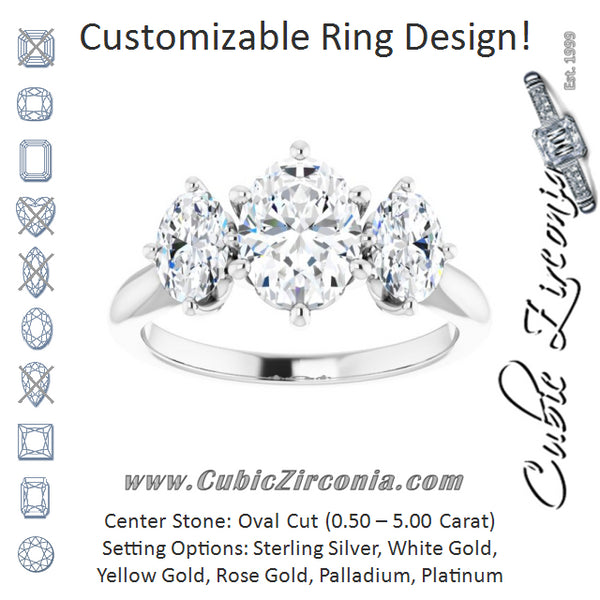 Cubic Zirconia Engagement Ring- The Taryn (Customizable Triple Oval Cut Design with Decorative Trellis)