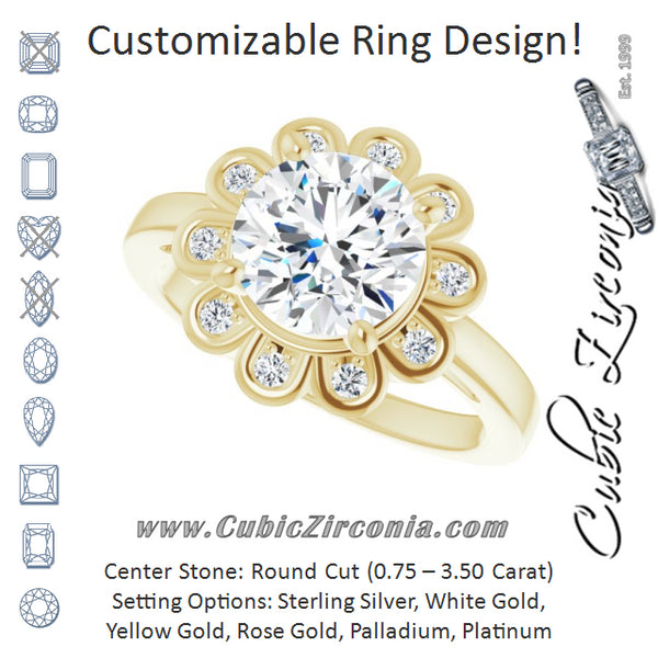 Cubic Zirconia Engagement Ring- The Mary Lou (Customizable 9-stone Round Cut Design with Round Bezel Side Stones)