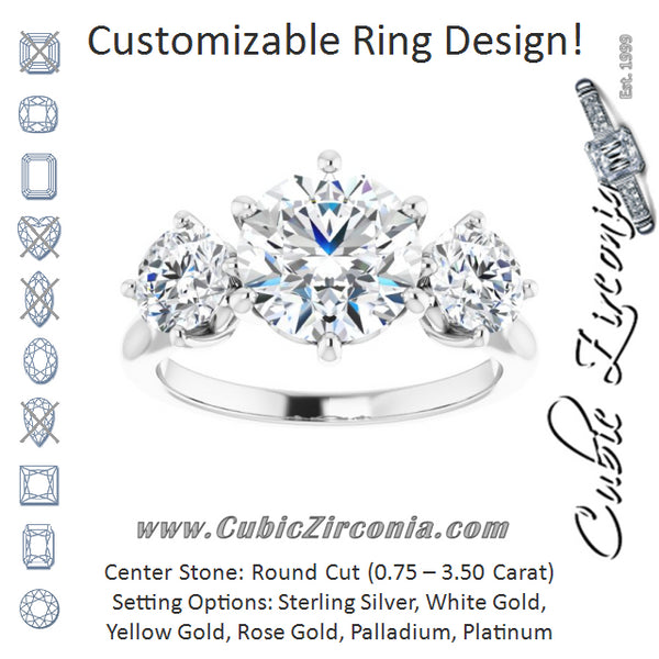 Cubic Zirconia Engagement Ring- The Taryn (Customizable Triple Round Cut Design with Decorative Trellis)