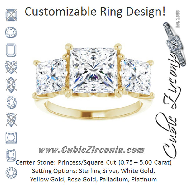 Cubic Zirconia Engagement Ring- The Taryn (Customizable Triple Princess/Square Cut Design with Decorative Trellis)