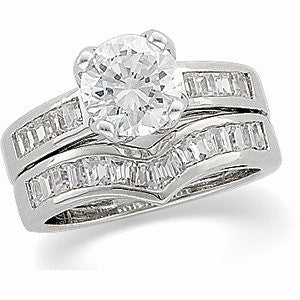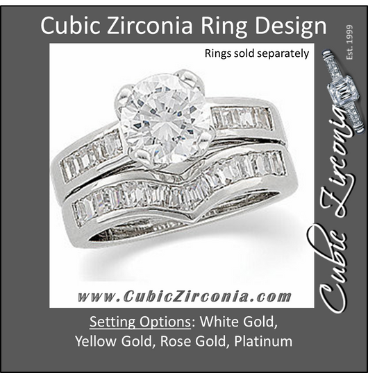 Note: This ring is pictured with both the engagement ring and matching band.  A purchase on this page is for the anniversary band only.  Buy Style 05-06 Anniversary ring's matching The Rochelle engagement ring to complete the cubic zirconia wedding set and get a nice discount for buying both at the same time!
