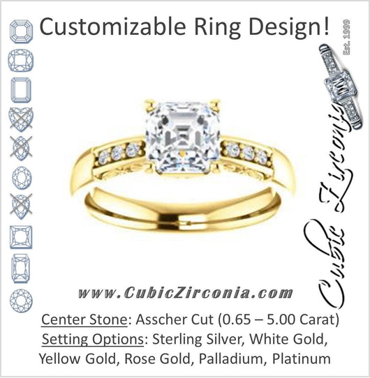 Cubic Zirconia Engagement Ring- The Migdala (Customizable 7-stone Asscher Cut Design with Round Channel Accents & Decorative Filigree)