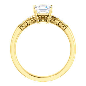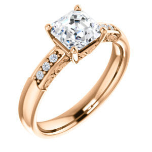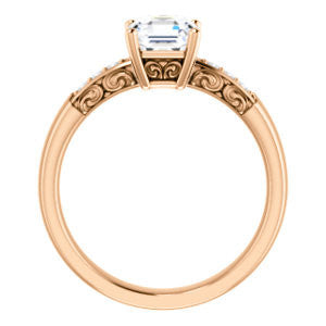A romantic, sentimental and timeless idea is to go for a classic design with vintage filigree in the French style like this one. In this not-so-humble product description writer's opinion, The Migdala engagement ring has class unsurpassed. Our master jewelers start the design clinic with a simple Asscher Cut center stone from 0.65 to 5.0 carats, and then complement with six (6) round-cut accent stones with three to each side of the center setting.  Then the vintage filigree with French fleur-de-lis inspired flavoring further decorates the same finger you'll crook to get exactly what you want when you want it. This thick, tapered and so-cute-you-might-be-tempted-to-snack-on-it hand-engraved ring will enhance your every outfit from wedding dress to jeans. Get The Migdala engagement ring as a stand-alone or together with the matching anniversary band to complete the cubic zirconia bridal set!