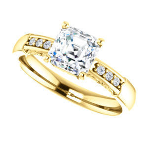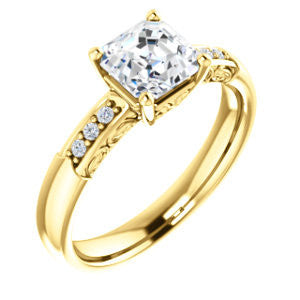 Center Stone Shape: Asscher Cut (as pictured). See this customizable ring set with other available center stone shapes here: customize setting.