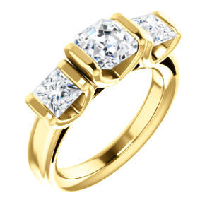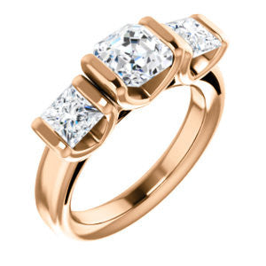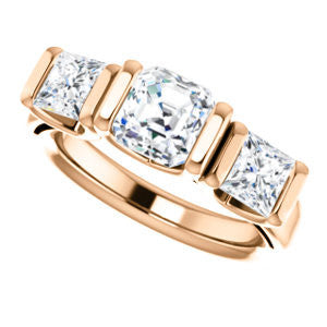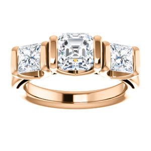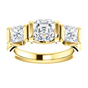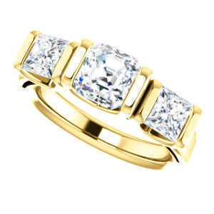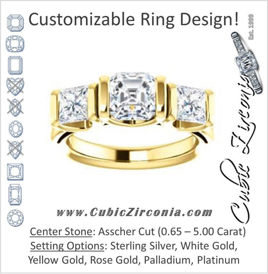 Cubic Zirconia Engagement Ring- The Nazareth (Customizable 3-stone Bar-set Asscher Cut Design with Princess Accents)