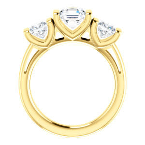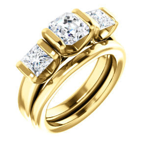If you, too, are a believer, we don't have to tell you that a small part of your perfect match was already living within you, just as a small part of you lived within your perfect match. And now that you've found that person, we offer The Nazareth engagement ring to further symbolize the bond of two becoming one, just as the two 4.00 x 4.00 mm bar-set princess cut accent stones of this 3-stone ring join together beneath the 5A Cubic Zirconia Asscher Cut solitaire in the carat weight of your choice from 0.65-5.0 carats. Get The Nazareth engagement ring as a stand-alone or together with the matching anniversary band to complete the cubic zirconia bridal set!