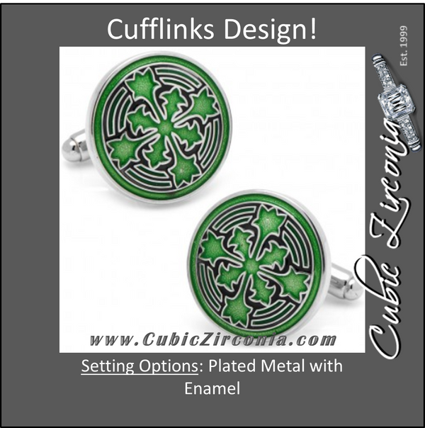Men’s Cufflinks- Green Enameled Firenze Petal
