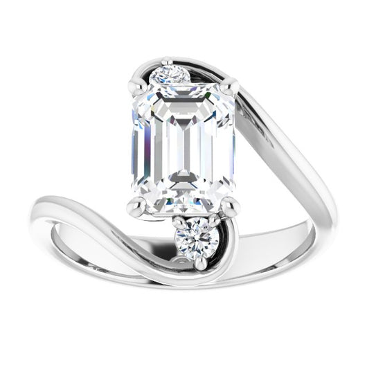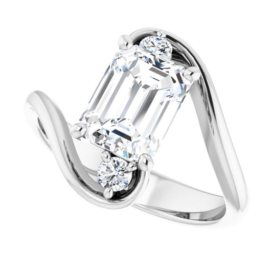 10K White Gold Customizable 3-stone Emerald/Radiant Cut Setting featuring Artisan Bypass