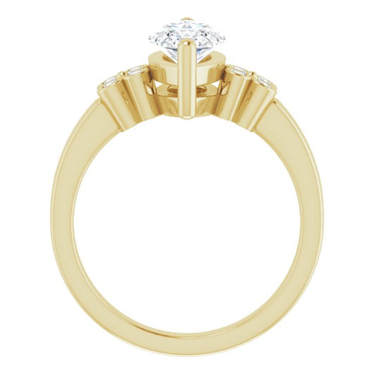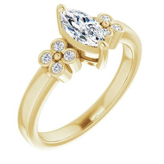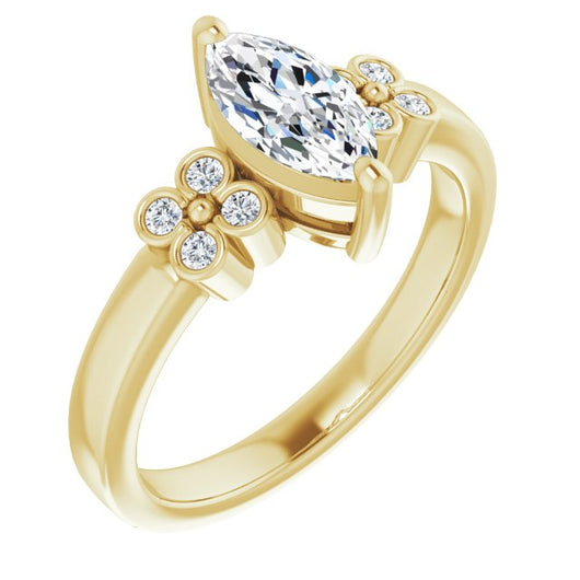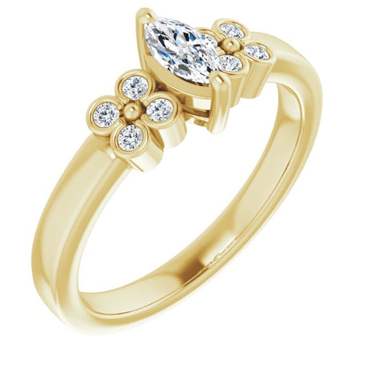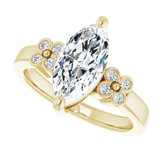 10K Yellow Gold Customizable 9-stone Design with Marquise Cut Center and Complementary Quad Bezel-Accent Sets