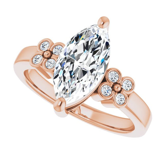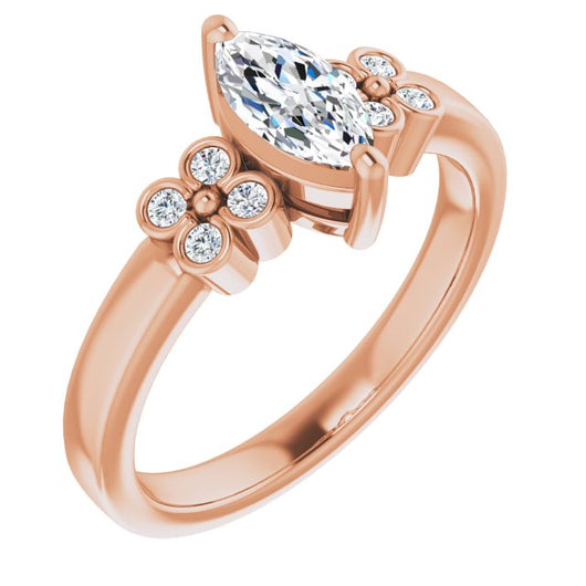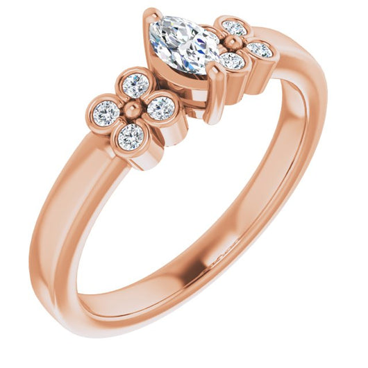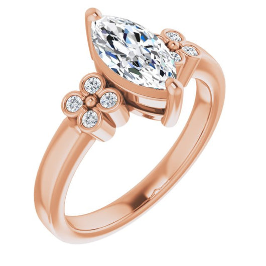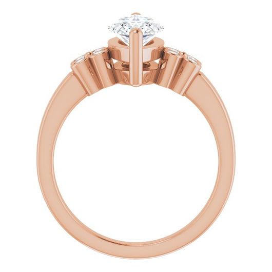 10K Rose Gold Customizable 9-stone Design with Marquise Cut Center and Complementary Quad Bezel-Accent Sets
