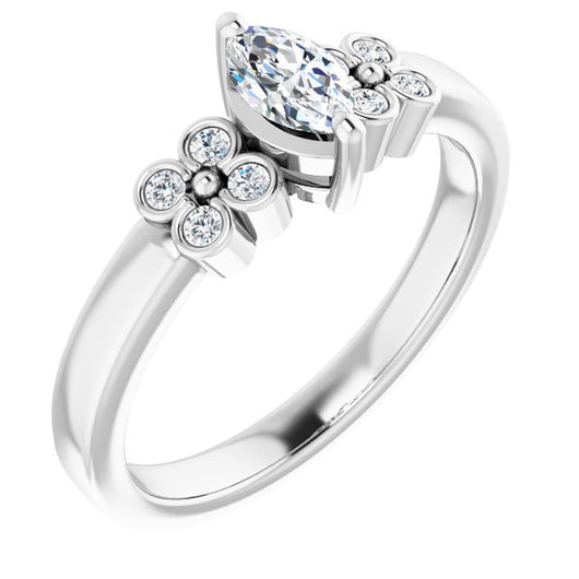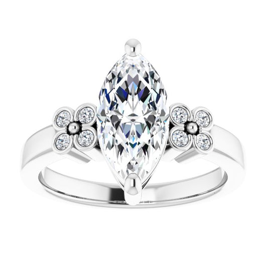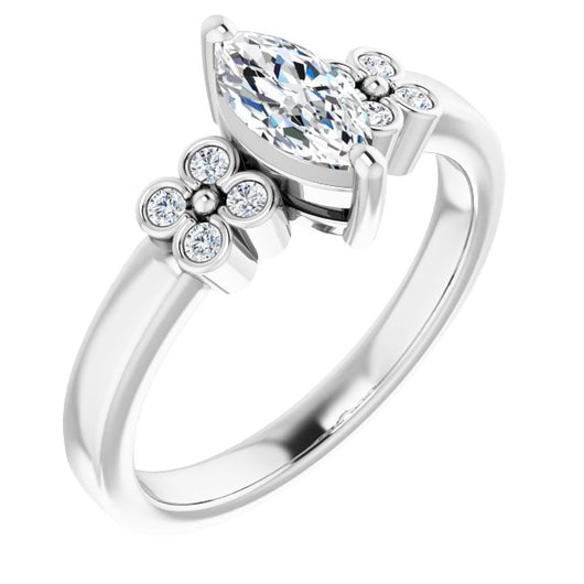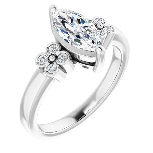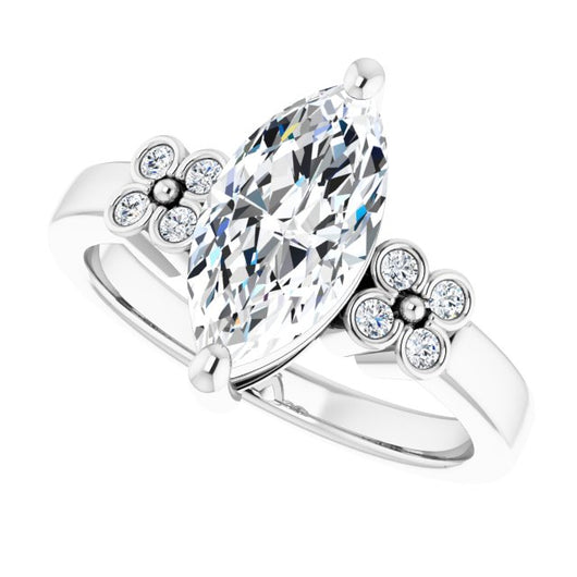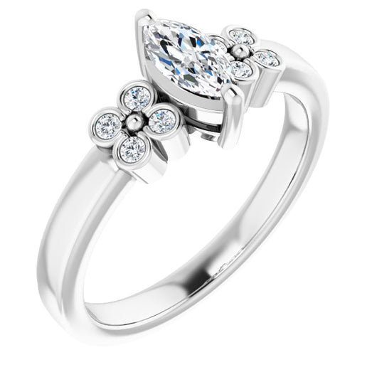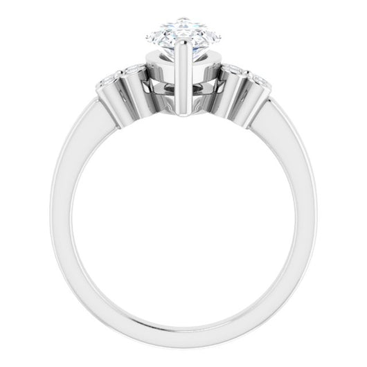 10K White Gold Customizable 9-stone Design with Marquise Cut Center and Complementary Quad Bezel-Accent Sets