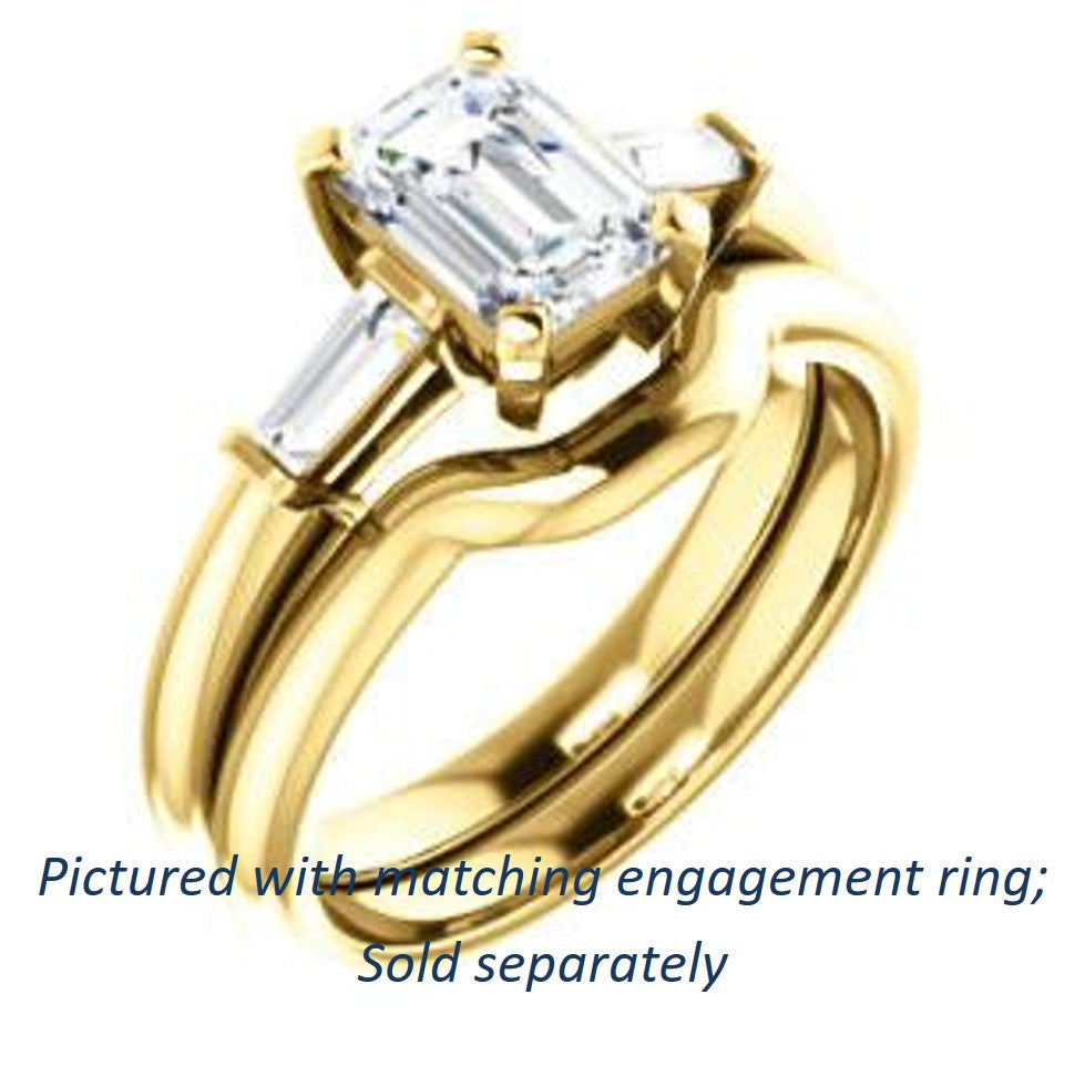 Center Stone Shape: Radiant Cut (as pictured with Emerald Cut). See this customizable ring set with other available center stone shapes here: customize setting.