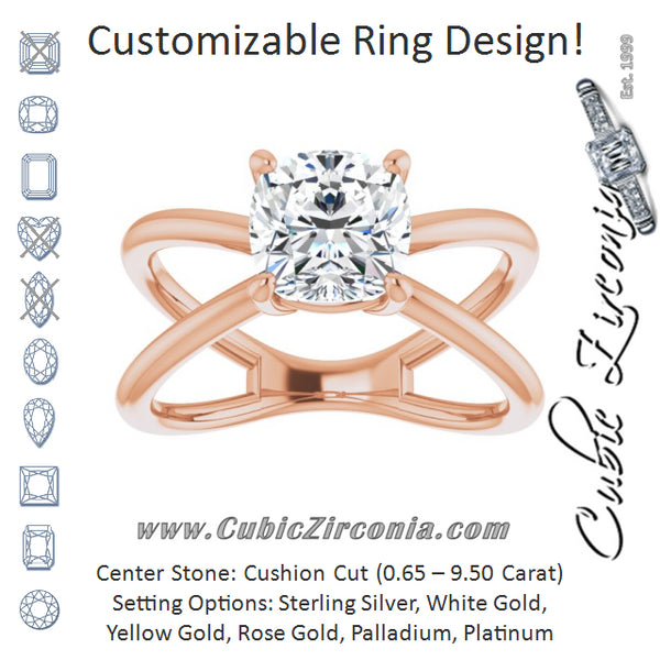 Cubic Zirconia Engagement Ring- The An Chen (Customizable Cushion Cut Solitaire featuring Delicate Metal Scrollwork)