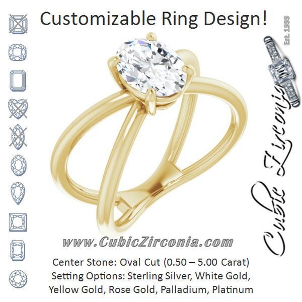 Cubic Zirconia Engagement Ring- The An Chen (Customizable Oval Cut Solitaire featuring Delicate Metal Scrollwork)